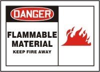 Chemical & Hazardous Material Safety Signs. DANGER FLAMMABLE MATERIAL KEEP FIRE AWAY (W/GRAPHIC). 10" x 14" Dura-Plastic Sign