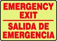 Safety Safety Signs. EMERGENCY AND FIRE E EMERGENCY EXIT (BILINGUAL). 10" x 14" Lumi-Glow Flex Sign