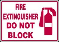 Fire Safety & Emergency Safety Signs. NO HEADER FIRE EXTINGUISHER DO NOT BLOCK (W/GRAPHIC). 10" x 14" Dura Aluma-Lite Sign