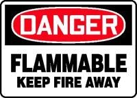 Chemical & Hazardous Material Safety Signs. DANGER FLAMMABLE KEEP FIRE AWAY. 10" x 14" Adhesive Dura-Vinyl Sign