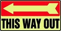 Safety Safety Signs. EMERGENCY AND FIRE E THIS WAY OUT (ARROW LEFT) (GLOW). 7" x 14" Lumi-Glow Plastic Sign